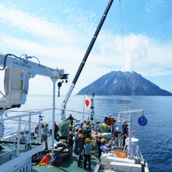 海域火山活動や地殻変動のモニタリングを担う、自律型観測支援システムを開発・運用しています。